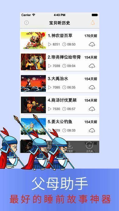 《宝贝听历史》是一款为孩子量身的打造的听历史手机软件,优质的声音,丰富的故事,让孩子更加的喜欢,是父母最佳的讲故事助手,孩子最好的睡前故事神器!