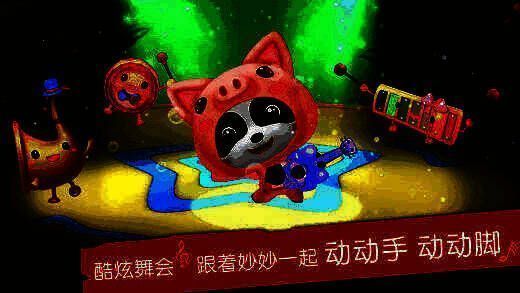 【酷炫舞会】:哇!妙妙在开演唱会哦~多个酷炫的舞台背景,随意切换~还有好多可爱的乐器小人在给妙妙伴舞呢~