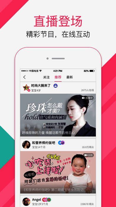 3、【辣妈直播】打造辣妈实时互动直播,让用户足不出户便可以和权威孕育专家、育儿达人实时互动交流,及时参与活动;