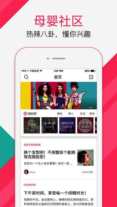 2、这里不但可以讨论育儿,更是女人的时尚情感天地。在这里关于瘦身,扮靓,美食,打击防范小三,婆媳关系,健康等的问题,都会有热心的辣妈以自己的亲身经历,告诉你该如何从容应对。