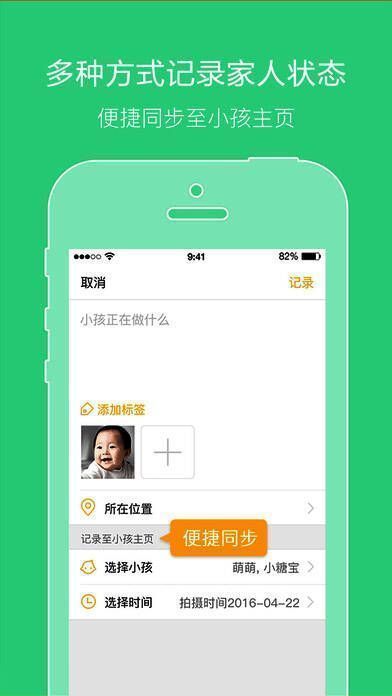 7、记录同步:发布记录时可以选择同步至多个小孩主页;