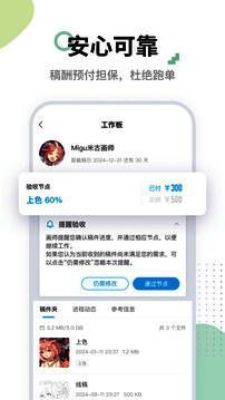 《米画师》最核心的优势之一是其安全担保交易机制。平台通过第三方资金监管,确保每一笔委托都建立在信任基础上,既保障了画师的作品权益,也让企划方在付款后获得应有的服务保障,有效规避传统私下约稿中的风险。