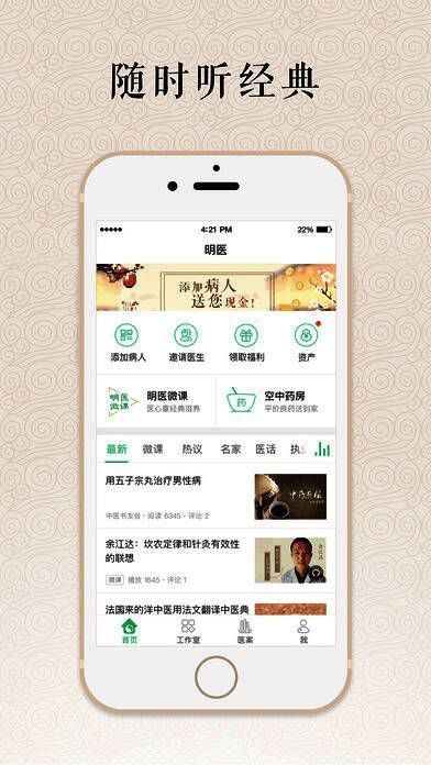 明医是一款为中医服务的手机APP,它在保护中医隐私信息的前提下,帮助他们对患者进行高效高质管理和教育,让患者跟着医生走,提升门诊量和收入。
