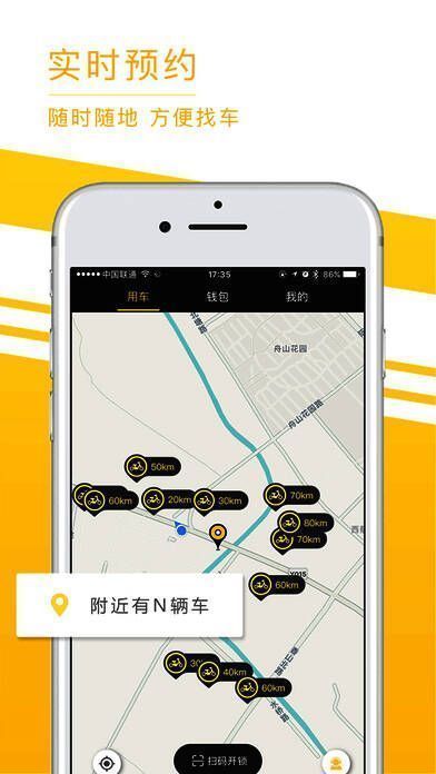 用户可以通过实时定位找到车辆或预约取车,扫码解锁,随取随停,线上支付。出行方式,减少环境污染出一份自己的力量。