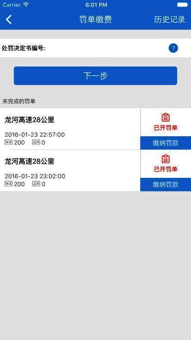 【罚单缴费】使用交警队开出的处罚决定书编号直接进行缴费处理;