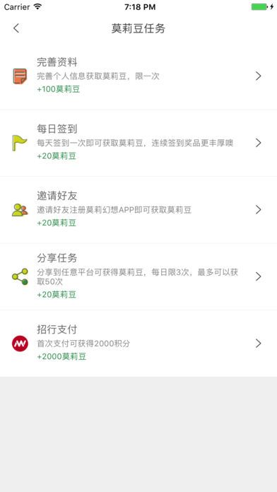 3、积分商城。人性化的功能设置,莫莉幻想用户可以随时在线做任务赚积分、现场做任务积分、查询积分和浏览商城礼品,积分商城海量礼品和全国莫莉幻想游乐场给您现场兑换礼品,体验便捷舒适。