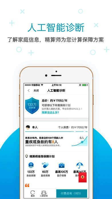 【人工智能诊断】全面排查家庭风险,运用保险行业20万数据样本和人工智能技术为用户定制保障计划;