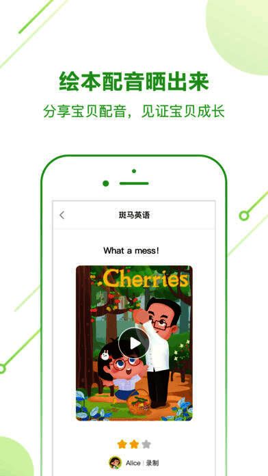 斑马英语针对儿童语言特征设计的智能口语测评系统,能够自动识别发音和评分。鼓励孩子在阅读之余大声开口说英语、讲故事,锻炼孩子的英语口语能力。绘本配音分享功能,可以制作属于孩子的有声绘本,把故事讲给大家听。