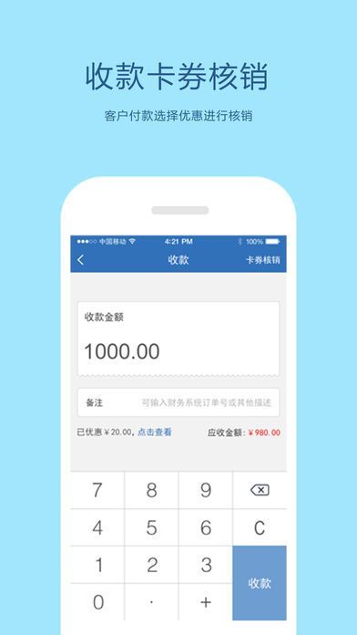 商家可在APP进行配置收银员的账号和权限、查看收银员业绩及其它操作,管理高效。