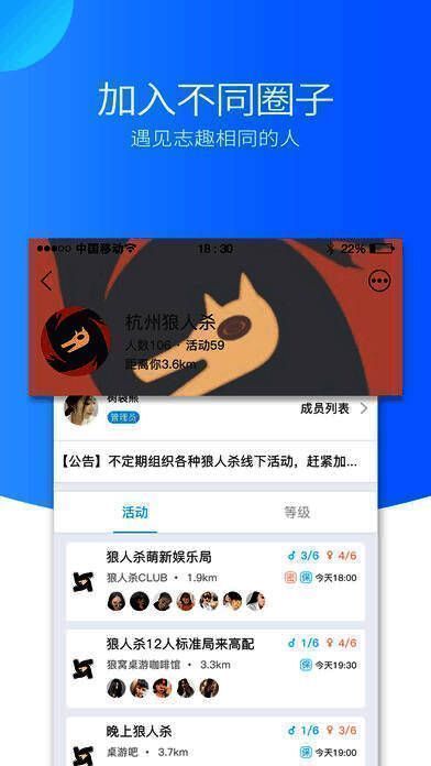 4、和附近的小伙伴们一起参与线下狼人杀、各类桌游、篮球足球等各类体育活动、吃饭电影、聚会等。