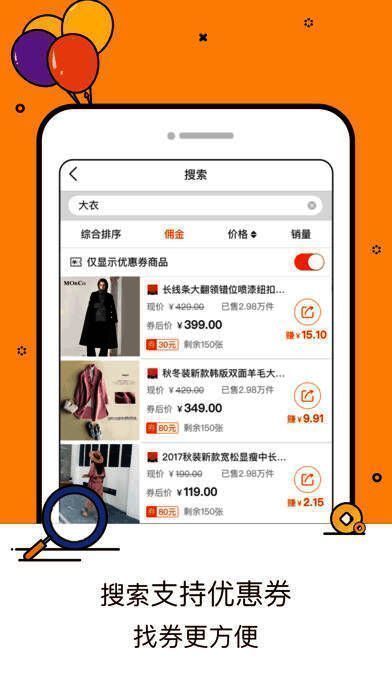 1、商品推广,提供淘宝海量商品以及各维度筛选排序。