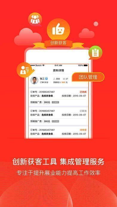 4、团队管理:系统支持发展及管理自己的团队,监控团队成员开单情况。