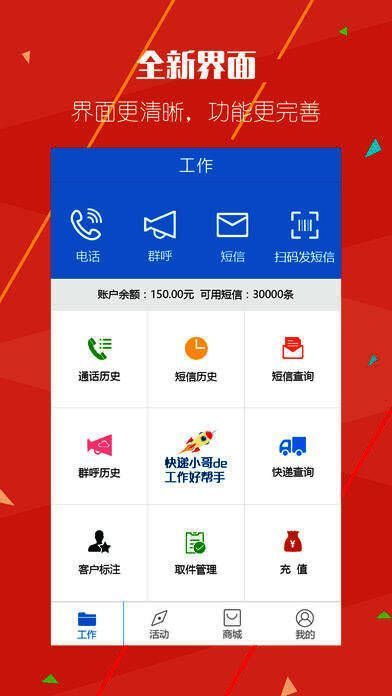 《快递员助手》是一款专门为快递员开发的软件。本软件可以帮助快递员定时发送短信和群呼,更好的和其他快递员在线交流,而且能够支持扫描输入号码记录,还有贴心的专属快递员商城,为快递员准备了一切必需品,方便快递员的日常工作。
