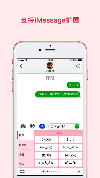 1、新增键盘扩展功能,随时随地发送可爱的颜文字表情;