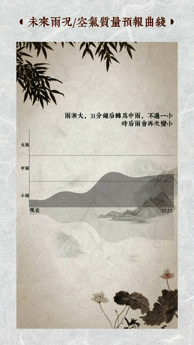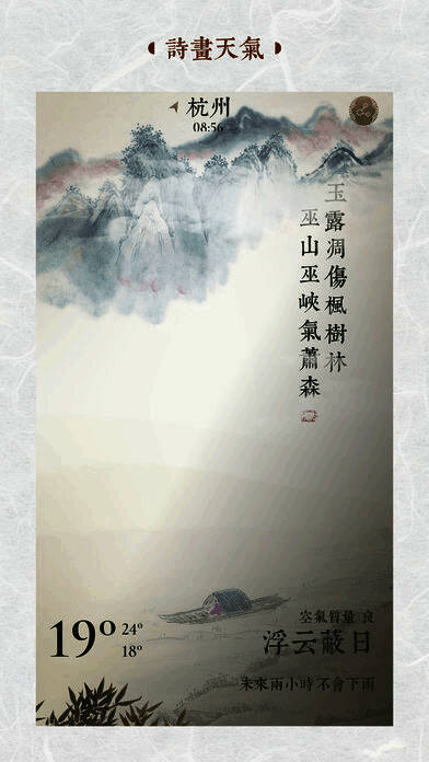 2、水墨山水天气背景,完美契合的诗词,天气也有了诗意的打开方式;