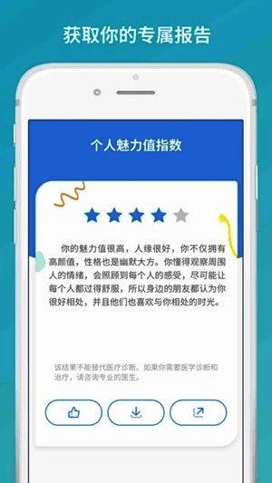 专业:与人工智能团队和知名心理学家共同合作,通过大量样本分析生成过千万条参考数据,每个测试都经过千名用户验证。