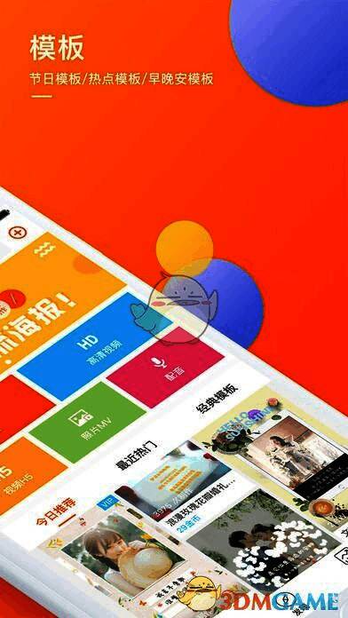 1、拥有丰富的视频模板,招商模板、节日模板、早晚安模板、热点事件模板;