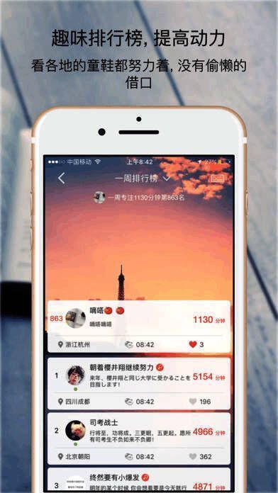 7、加入排行榜,让专注更有趣;