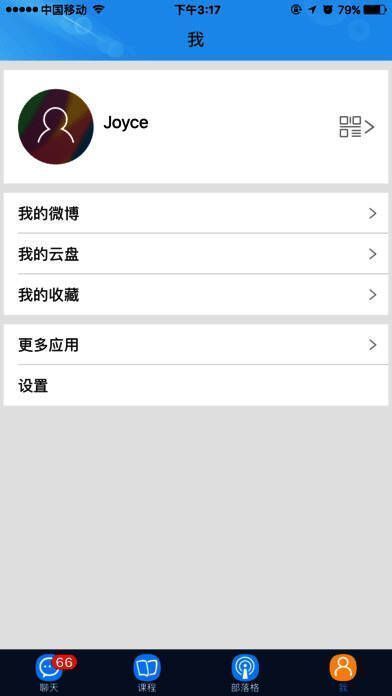 【个人界面】:支持我的云盘、我的微博、我的收藏、更多应用等功能。