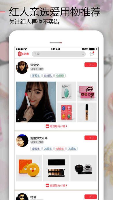 映客视频达人孙一萌、微博红人瑞希希大爷、美拍达人造型师大红儿,国内一线彩妆导师美丽俏佳人kevin老师...你要的美妆红人,都在花卷等你关注!一线明星御用化妆师倾情推荐;