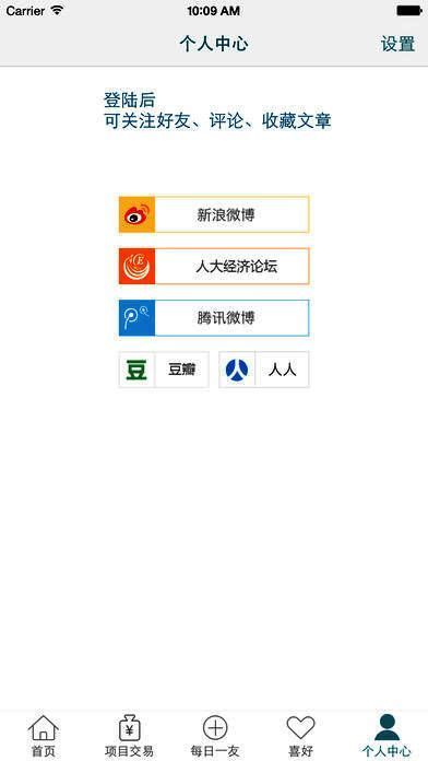 3、可使用多种社交账号登陆,关注好友,查看精彩评论,分享高质量经管资讯文章;