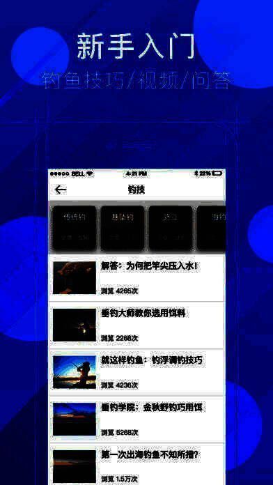 覆盖传统钓、悬坠钓、路亚、海钓、渔具、赛事、钓行等多种多样的视频内容,在观看视频中学习并提高钓技,快速入门。
