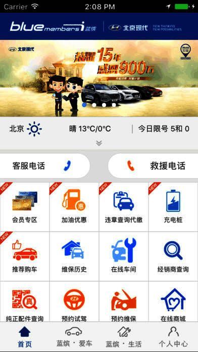 北京现代bluemembers APP是由北京现代蓝缤品牌为更好地服务广大车主推出的,具有众多特色服务的APP,包含预约维保、预约试驾、充电桩查询缴费、加油优惠、违章查询代缴等功能。认证车主用户,即可获取签到送积分、24小时道路救援服务、途家会员权益等尊享服务,更可享积分商城最高八折惊喜优惠。北京现代bluemembers APP致力于为每一位用户提供高效、便捷、个性化的用车生活体验。