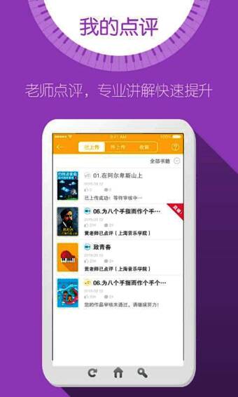 《弹吧钢琴》为用户提供独家的录音、视频上传功能,用户上传学习音频、视频后,可即时获得包括上海音乐学院、星海音乐学院等名校名师的专业点评,打破地域障碍,无论在哪里学习都能得到最优质辅导。