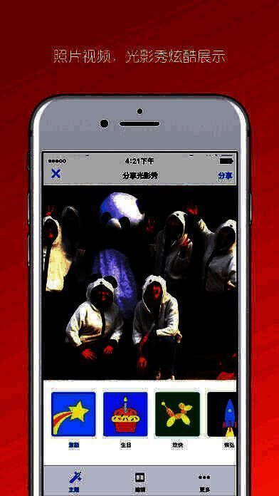 4、查看用照片制作的精美光影秀,并分享到其他社交网络;