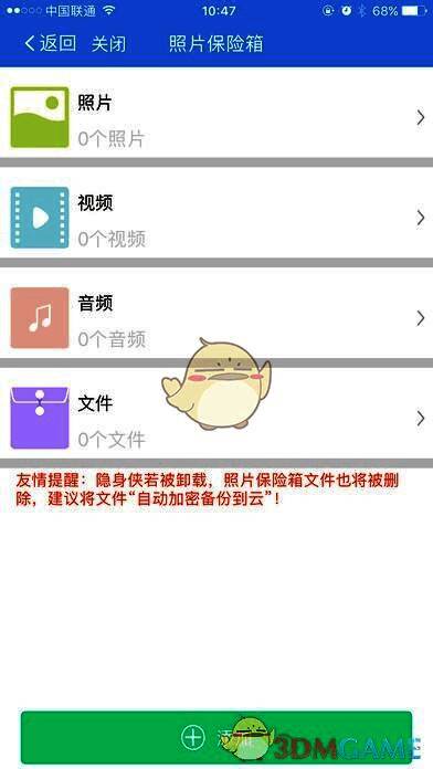 《隐身侠加密保险箱》是一款用户手机端的信息保护专家。本软件秉承工匠精神帮助数百万用户的机密信息进行保护,让用户的个人信息得到更安全的保护,同时还为用户提供云下载服务,在保护用户信息安全的同时,方便用户对自己文件随存随取,为用户的信息使用提供方便。