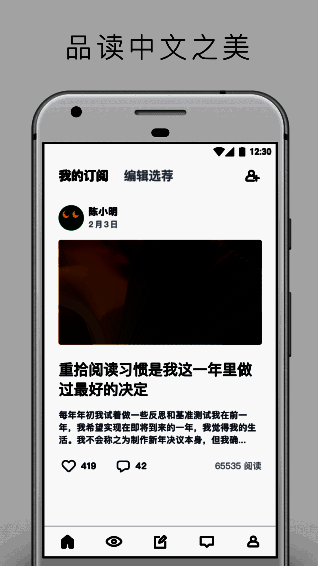 在纯粹的文字世界里,订阅你喜爱的作者,字里行间app会根据你的阅读偏好为你准备更加精彩的内容;