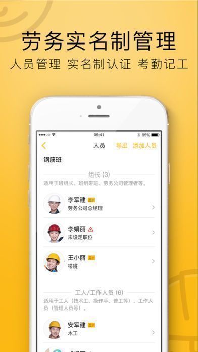 【劳务管理】项目人员管理、工人实名制、工地考勤,减少劳资纠纷,保障双方权益。