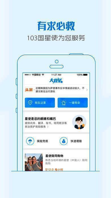 大救星定位于中国人出国自由行必备工具,大救星的一键救命救援服务及普通星使服务,已覆盖103个国家,江泰从16年开始派出代表在世界各地联系当地的使领馆及供应商,获得了第一批宝贵的星使服务者及供应商资源,充分满足从专业救援到就普通向导的需求。