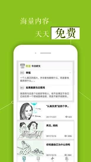 意林app手机上的杂志软件,很喜欢看。以前上学的时候经常看意林,没想到现在有app软件了,果断下载使用。发现在手机上看意林更加方便了,各类文学作品应有尽有,充实自己,增长知识。《意林》倡导积极健康的思想理念,关注现实生活,贴近现代人内心世界,弘扬博爱宽容的为人处世之道,表现人与人之间最真实的情感接触。力图通过温馨的故事、生动的语言,补充读者的生活经历,延展读者的精神边界,打造中国人最真实最贴心的心灵读本。
