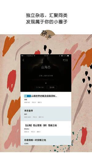 1、创作杂志:人人都是主编。在有读故事,你可以创建并主编自己的杂志,和小伙伴组成“杂志社”,接受别人投稿或收录合适的文章到自己的杂志,排版精美,界面优雅,供读者发现、订阅。