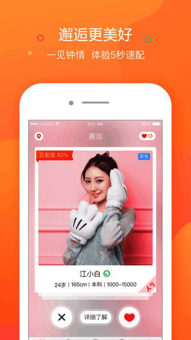 《百合网》是你脱单的最佳社交平台,《百合网》不仅能为你提供众多的单身男女资源,还为你提供有趣的交友游戏,让你拥有更大的就会找到心仪的对象,让你自己摆脱单身狗的身份,拥有向别人抛洒狗粮的机会!