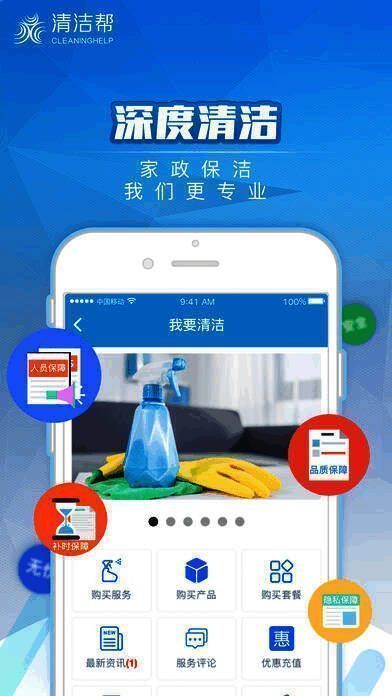公司致力于通过移动O2O方式,定时定点定期为广大客户提供绿色环保、标准、优质贴心的清洁服务。清洁帮坚决杜绝“磨洋工,出工不出力”,所有的保洁员都需按标准清洁作业流程操作(清洁帮已制作标准作业流程视频放在APP里供客户监督和检查,同时使我们的客户体验服务和保洁员服务质量有统一的评价标准),并经过严格的身份认证,为您定制专业、安全、高效的清洁服务,是您室内清洁的好帮手。