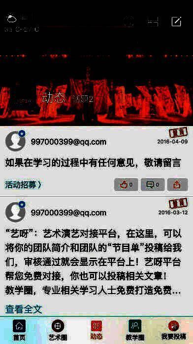 在“我要投稿”里面,您可以发布所有与艺术圈软件相关的文章!