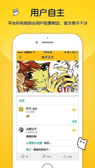 4、可自由开设话题,贴吧功能,给相同圈子的爱好者提供纯净的交流空间,完全自由自主。同好之间自由交流,不同圈子互不干涉。