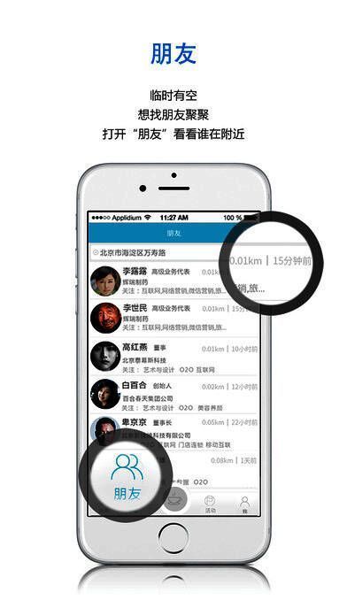 朋友:临时有空,想找朋友聚聚,看看有谁在附近;