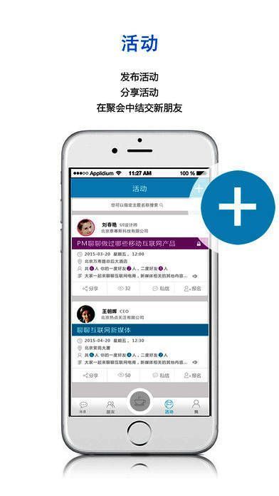活动:组织活动,参加活动,分享活动,在活动中结交新朋友。