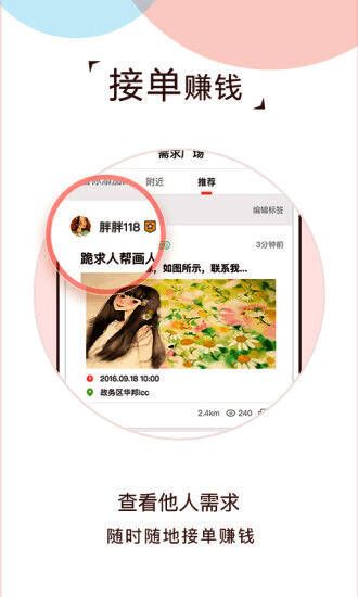 3、接单赚钱:查看他人需求,随时随地接单赚钱;