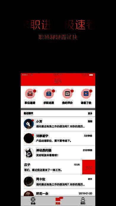 5、求职进展:你的应聘进展一目了然,并可以实时推送给你,让找工作不再盲目等待;