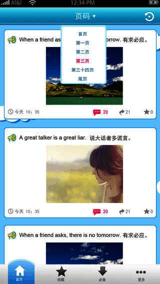 每日更新轻松有趣的英语视频,让用户在英语视频故事情景中模拟演练,拓展词汇,提升口语。主题实用有趣,基础发音、日常对话、商务职场、海外旅游、少儿英语、热门美剧等。