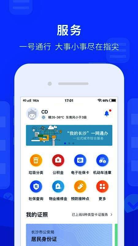 政务服务、公共服务、社会服务我的长沙app可一站式集中办理。
