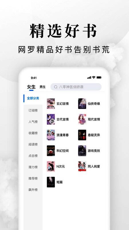 无任何的广告问题,支持玄幻、言情、都市以及仙侠和穿越等题材的分类。