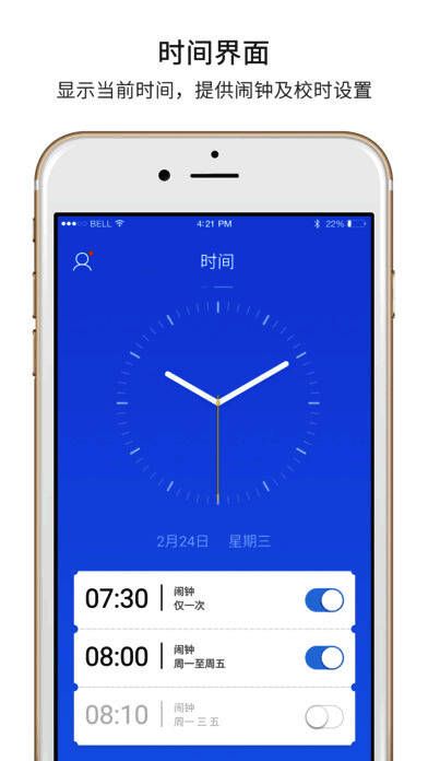 3、提供闹钟设定,通过腕表震动通知用户,避免打扰周边;