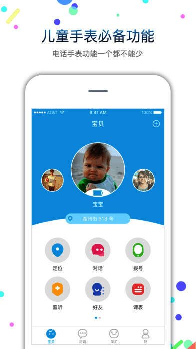 基本功能包括:安全定位,语音对讲,一键拨号,一键监听,通讯录,通知,课程表。