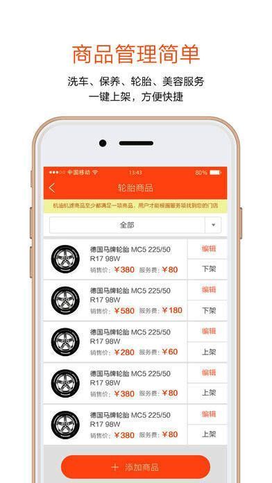 【商品管理】洗车、保养、轮胎、美容服务,数据能够精准匹配,无需商家编辑产品图片和文字详情,仅需编辑价格即可,操作简单,方便快捷;