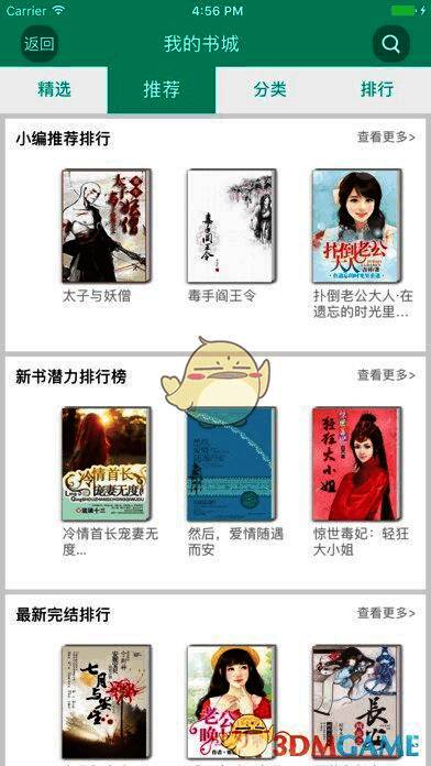 小巧:不是很大的内存占用、轻松进行小说的阅读!